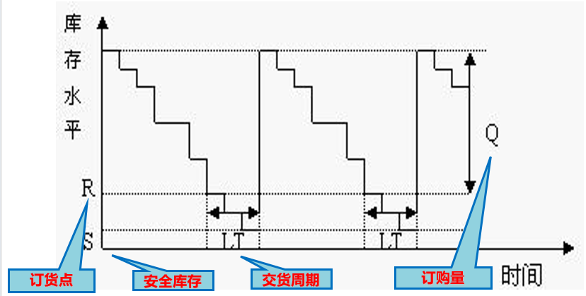 优点:由于采用连续检查方式,一旦库存水平低于订货点就发出订单指令,能够保持稳定的顾客服务水平,维持较低的安全库存水平;加上按EOQ确定订货批量,库存成本较低。
