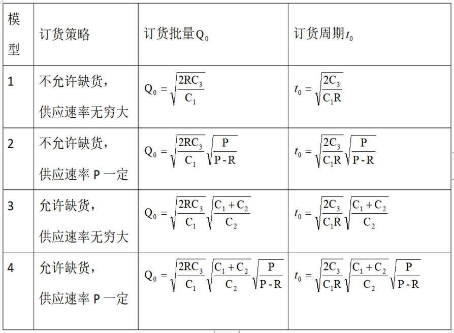 再订货点设定:由于订货量,订货提前期两个不确定因素存在,再订货点在设定上针对以上两个因素时,有其对应的订货模型: