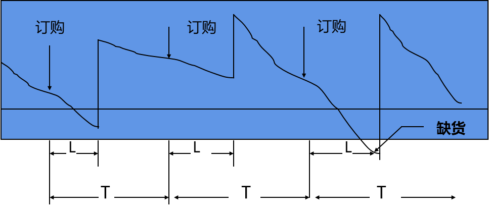 这个系统下,每次检查库存的时点是固定的,比如每周一或每月 1 号。不是库存低就订货,而是“定期看库存,不够就补”。